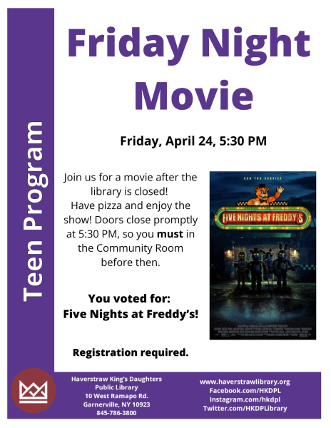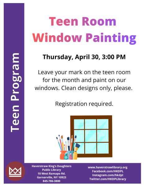 For more information, contact the Teen Librarian at 845-786-3800 x44 or email teens@haverstrawlibrary.org.